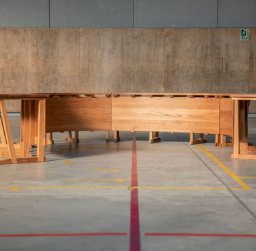 - Wooden ship building because it refers to the traditional ways of construction of Galician vessels. In this case it is taken to give the constructive structure to the table.