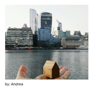 At this time there is no other projection surface than ourselves. In order for these ongoing projections , thoughts and reflections not to be lost, since they are so important for our future, I have modeled this house: so small that it fits in a matchbox and so large that it can accommodate the thoughts and reflections of the whole world. In it we can keep and safeguard them until we are free. Then we must implement them in order to create a new world. A world with meaning. I give you one of these houses, so you can carry it in your pocket, put it on your desk or in front of the mirror to serve as a resource when creating world ...